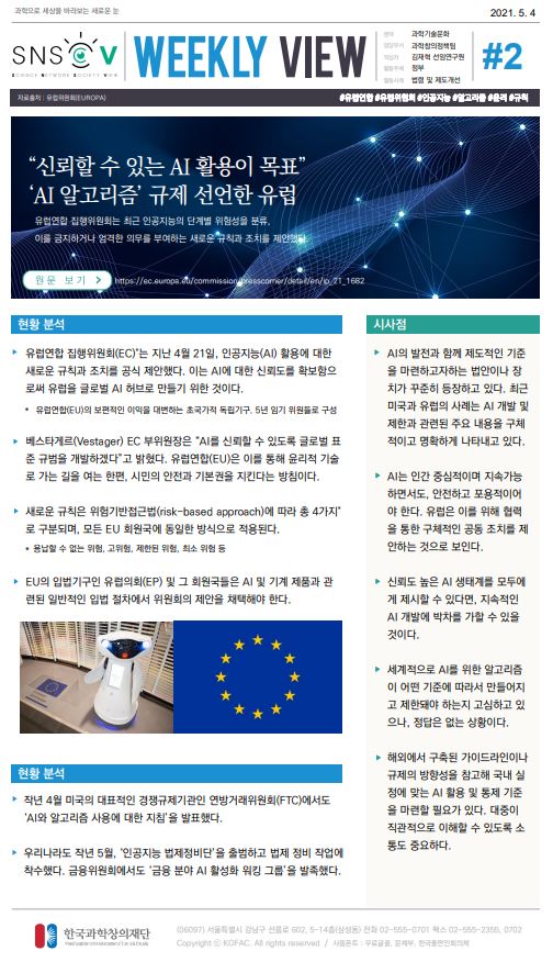 신뢰할 수 있는 AI활용이 목표, AI알고리즘 규제 선언한 유럽