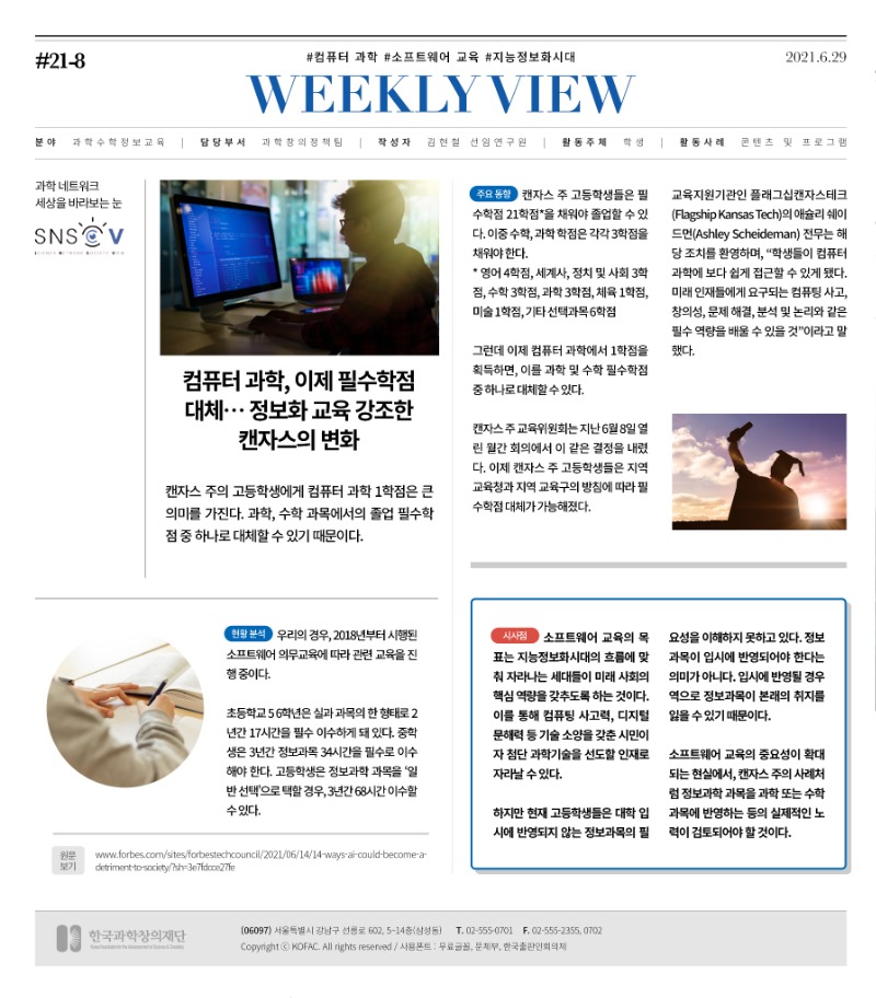 컴퓨터 과학, 이제 필수학점 대체...정보화 교육 강조한 캔자스의 변화