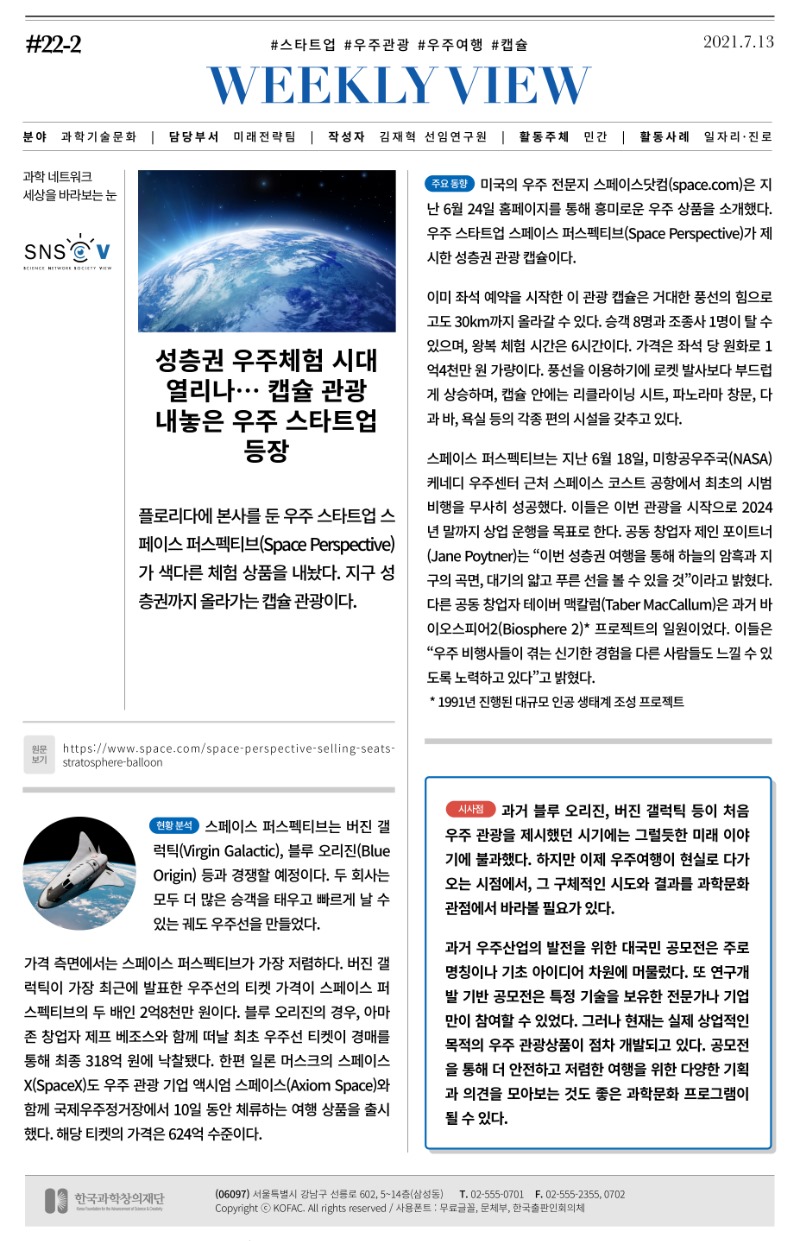 원문제목Space Perspective starts selling seats for balloon rides to stratosphere