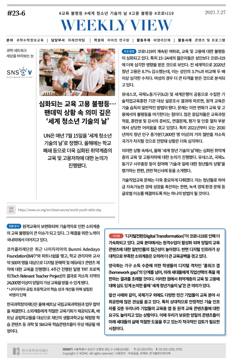 [23-6] 심화되는 교육·고용 불평등...팬데믹 상황 속 의미 깊은 '세계 청소년 기술의 날'.pdf