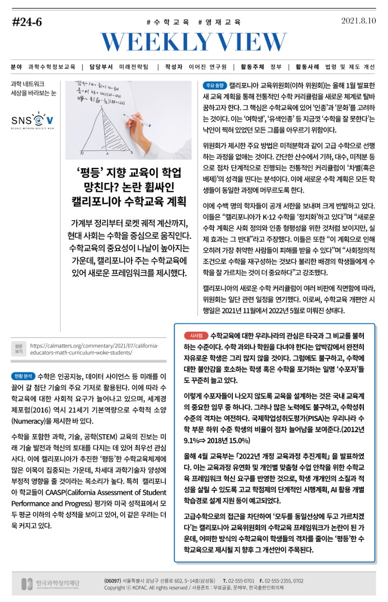 [vol.24-6] ‘평등’ 지향 교육이 학업 망친다 논란 휩싸인 캘리포니아 수학교육 계획.pdf